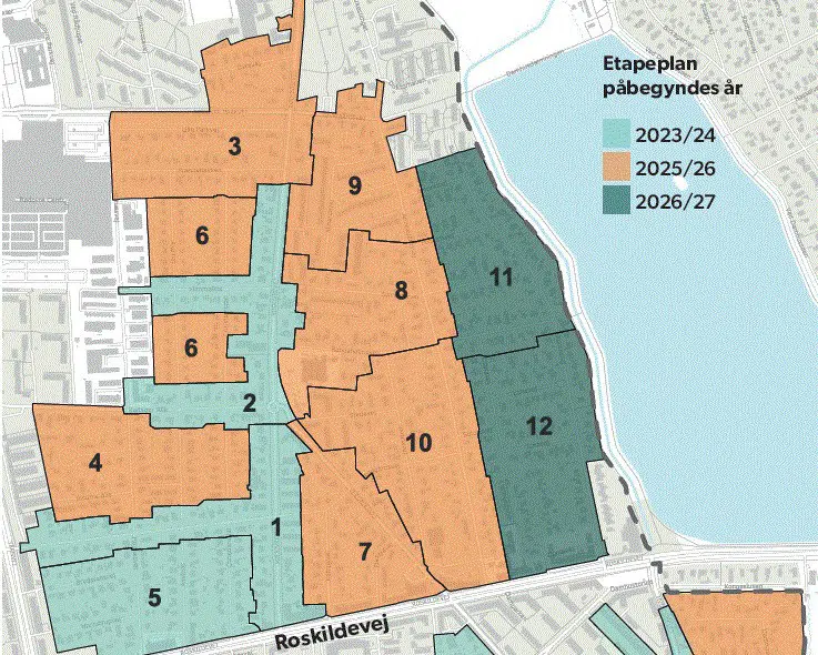 Se kort og tidsplan over fjernvarmeudrulningen i hele Rødovre Kommune.
